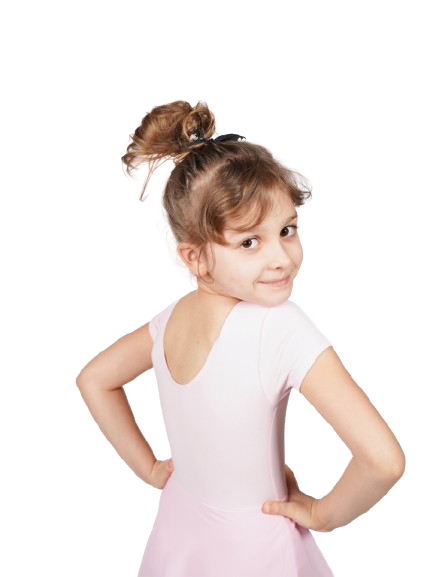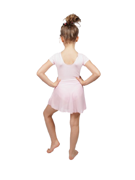 Strój baletowy JASNO RÓŻOWY to body gimnastyczne z krótkim rękawem z wszytą w pasie asymetryczną szyfonową lekką spódniczką.